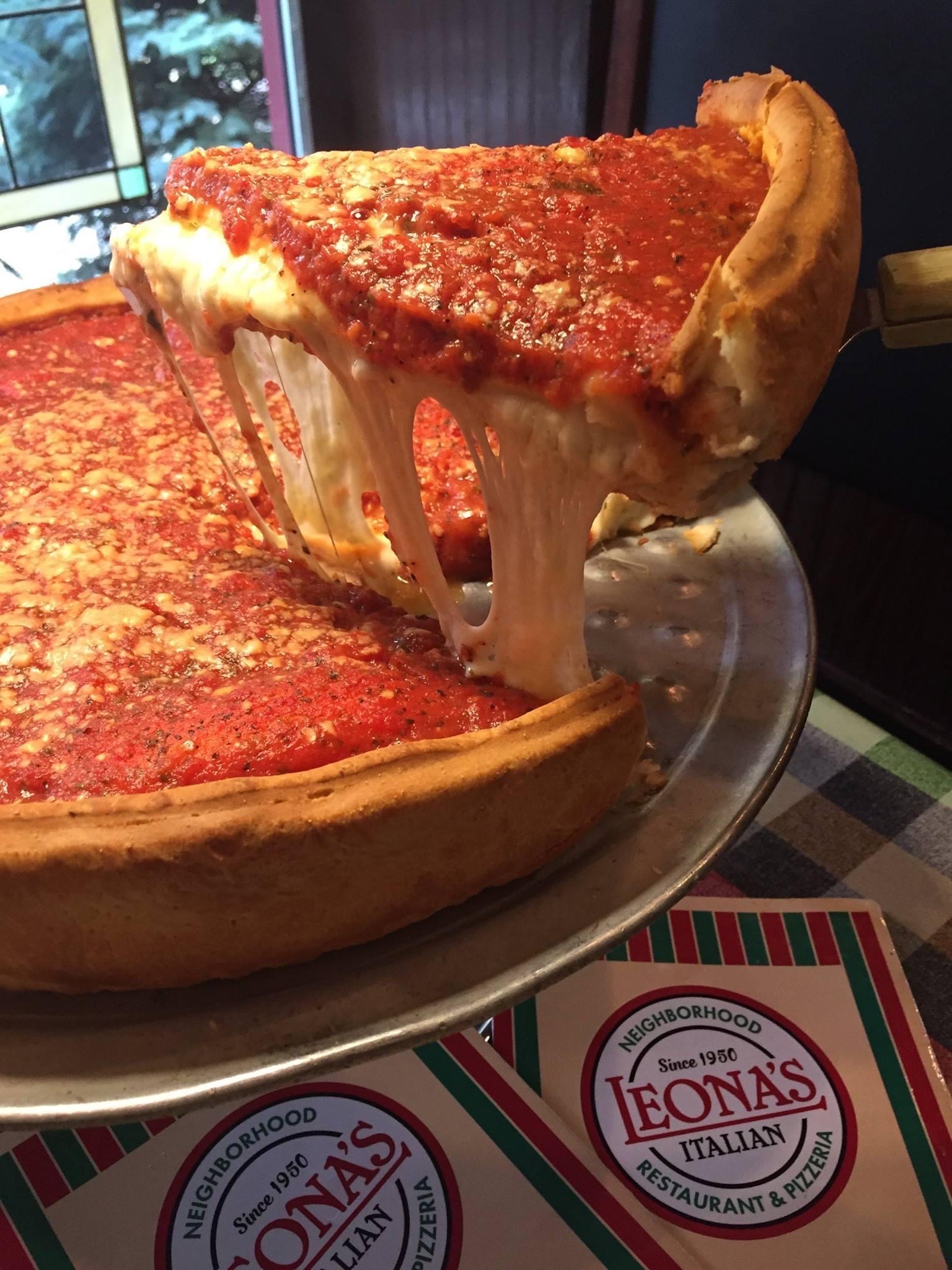 Leona’s Stuffed Pizza adds a unique twist to Chicago’s rich tapestry of deep-dish delights, combining tradition with a playful innovation that delights the senses. Founded in 1950, Leona’s quickly became known for its hearty and comforting approach to stuffed pizza, which perfectly encapsulates the essence of home-cooked goodness. Emphasizing quality over quantity, each pizza at Leona’s is crafted with love, featuring thick, golden crusts enveloping a generous mix of creamy cheese, fresh vegetables, and savory meats.